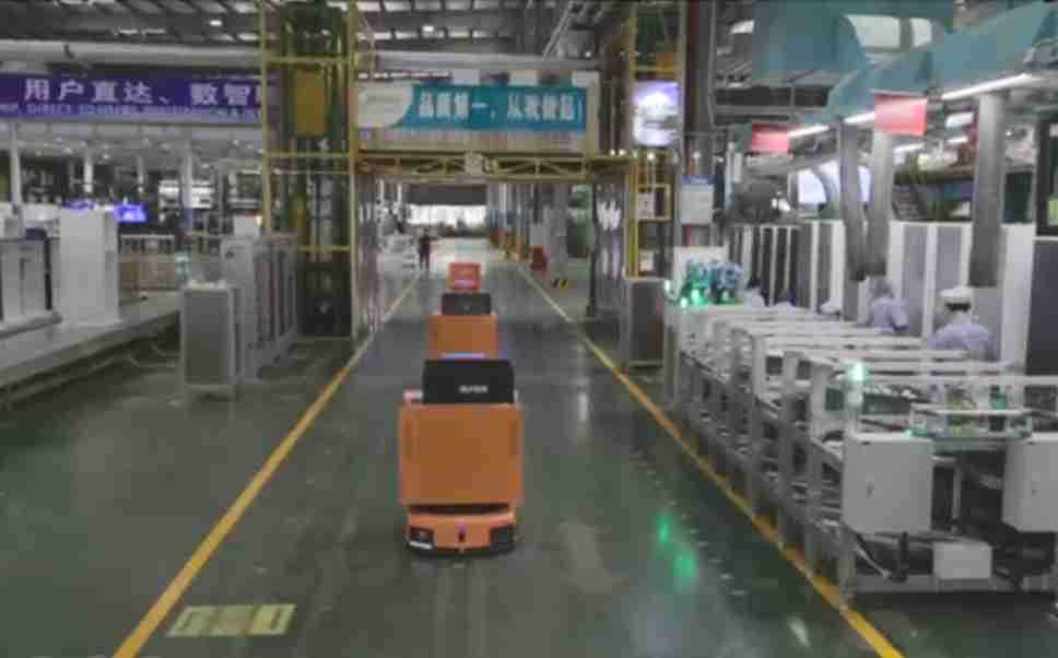 为车载冰箱物流配送打造的智能解决方案,,,,包含产中物流通过潜伏举升AMR搬运至线边,,,,产后成品物流智能仓储,,,,流程包含产中物流智能齐套入库,,线边安灯叫料AMR智能配送至线边,,,成品入库、、出库,,通过无人堆高车机器人,,,,智能仓储管理替代人工作业管理,,,实现更高存储、、更高效率、、、、更具柔性化的解决方案。。。。